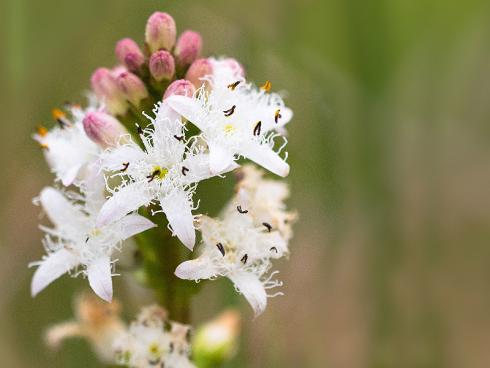 Mit dabei waren Stiftungs-Botschafter John Langley, Geschäftsführer Axel Jahn, Leiterin des Projektes "Blume des Jahres" Paula Höpfner und Dr. Carsten Schirarend, wissenschaftlicher Leiter des Botanischen Gartens der Universität Hamburg.Lothar Frenz, Jahrgang 1964, freut sich über seine Wahl zum Stiftungs-Botschafter: "Loki Schmidt und mich verband neben dem ständigen Staunen und Wundern über die Natur die Sorge um seltene Pflanzen und Tiere. Mit dem Fieberklee als Blume des Jahres 2020 verkünde ich eine Pflanze aus einem Lebensraum vor der Haustür, indem Loki schon als Kind auf abenteuerliche Entdeckungsreise ging."Die Blume des Jahres kann zwar kein Fieber senken und mit Klee ist sie auch nicht verwandt, aber sie ist Klimabotschafterin und ein reich gedeckter Tisch für Bienen.Fieberklee ist ein Multitalent und wird Naturfreunde ein Jahr lang in die Welt der Moore, Sümpfe und Feuchtwiesen führen. Denn dort ist er zuhause. Die mehrjährige Sumpfblume ist eine typische Art der Übergangsmoore und bereitet als Frühbesiedlerin in Verlandungszonen anderen Pflanzenarten den Weg. Sie ist nahezu perfekt an diese Lebensbedingungen angepasst, denn ihre hohlen Stängel und Blattstiele dienen dem Auftrieb und der Durchlüftung am Wasserstandort. Seine ganze Schönheit stellt der Fieberklee dann zwischen April und Juni zur Schau ─ wenn er mit seinen zarten, weißen und auffällig stark bewimperten Blüten vor allem Hummeln zu Tisch bittet.Mit der Benennung des Fieberklees zur Blume des Jahres macht die Loki Schmidt Stiftung auf den dringend notwendigen Schutz seiner besonderen Lebensräume, der Moore, aufmerksam und thematisiert ihre Bedeutung für Mensch und Natur. Denn nicht nur eine Vielzahl gefährdeter, hoch spezialisierter Arten fühlt sich hier wohl – vor allem das Klima wird in erheblichem Maße durch Moorlandschaften beeinflusst.