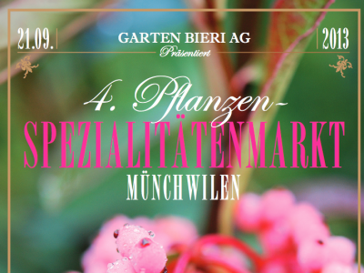 Pflanzenmärkte im Frühjahr sind dicht gesät. Im Spätsommer und Herbst gibt es hierzulande jedoch erst wenige. Einer der wenigen ist der Pflanzen-Spezialitätenmarkt Münchwilen auf dem Gelände von Garten Bieri. Ein kleiner, aber feiner Markt hat sich hier in den letzten Jahren etabliert und seine Kundschaft aus Pflanzenkennerinnen und -kennern gefunden. Daran teil nehmen bekannte Gärtnereien wie Eschmann, Frei Weinlandstauden, Baumschulen Reichenbach, Eulenhof, Fawer Staudenkulturen, Gärtnerei...
