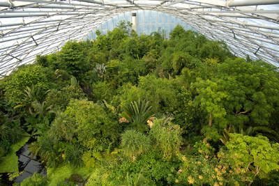 Die Vorbereitung der Pflanzen vor dem Auspflanzen war sehr sorgfältig. Von Anfang an setzte man natürliche Gegenspieler ein, um den Schadorganismen zu Leibe rücken. Zum Beispiel den Weissen Fliegen, die in vielen Gewächshäusern wegen ihrer Resistenzen gegenüber Pflanzenschutzmitteln ein Problem darstellen: Mit der Encarsia-Schlupfwespe und einem Pilz konnte ihnen wirkungsvoll zu Leibe gerückt werden. Das grösste Problem stellt zurzeit die Weissfüssige Hausameise dar, eine Ameise, die ursprünglich aus Sri Lanka stammt und wahrscheinlich mit eingeführten Pflanzen in die Halle gelangte. Mit biologischen Ameisenfallen, neuerdings auch mit Nematoden, wird versucht, die Population auf eine akzeptable Grösse zu reduzieren. Zu Hilfe kommen da natürlich auch all die insektenfressenden Tiere, die einen beträchtlichen Teil der sogenannten „Schädlinge“ wegputzen.