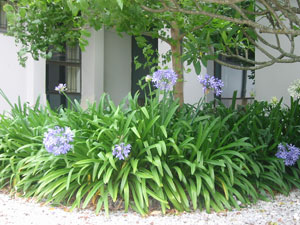 Als Kübelpflanze ist sie hierzulande beliebt,  in Südafrika wird sie gerne grossflächig gepflanzt: die Schmucklilie (Agapanthus sp.). Oft sind die bei uns nicht winterharten, hohen Arten (A. praecox) entlang von Gehwegen- oder Zufahrtsstrassen zu Wohnhäusern zu sehen. Das üppige Grün und die reiche Blüte machen sie zu einer attraktiven Pflanze. Manchmal sind sie auch an halbschattigen bis schattigen Stellen zu sehen, wo sie in den warmen südafrikanischen Sommern (Dezember, Januar) bestens gedeihen.