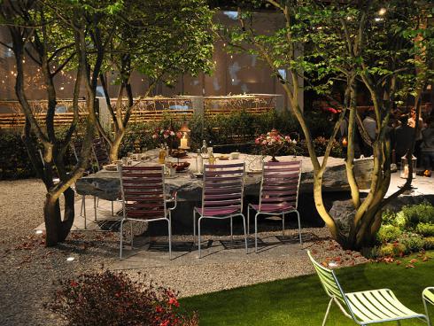 Die Ostschweizer Gartenbauer Egli Grün laden an der Giardina 2017 in ihren Lebensgarten ein, dessen Augapfel ein Fels bildet, der direkt vom Gneiss-Steinbruch im Calancatal (GR) an die Giardina eskortiert und wo er als eine einzigartige Grill- und Kochstelle das Herzstück des Schaugartens bildet.